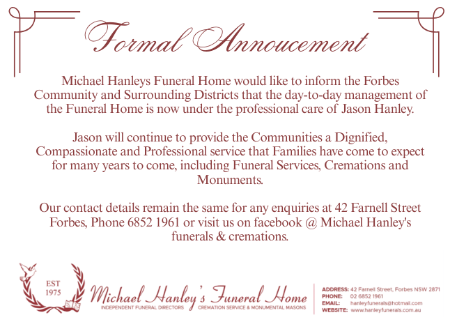 Michael Hanley’s Family Funeral Home is based in Forbes, NSW and was founded in 1975 by Michael and Brenda Hanley.